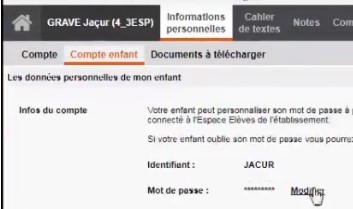 - Le code d’accès (1 par enfant) est communiqué par le service administratif et financier.