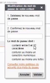 - Puis Saisir deux fois le nouveau mot de passe et Valider