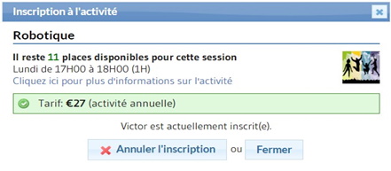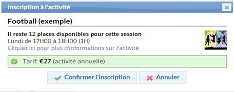 • Cliquez sur « Confirmer » pour valider l’inscription de votre enfant à l’activité