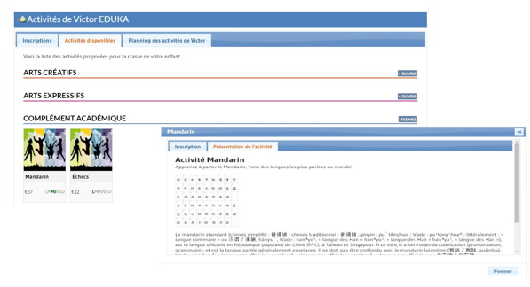 - visualiser les planning des activités auxquelles est inscrit l'élève concerné
